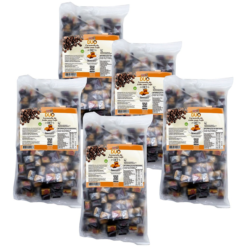 Bala Duo de Caramelo de Leite Diet com Café Hué (Sem Adição de Açúcares) Sem Glúten Pacote 1KG