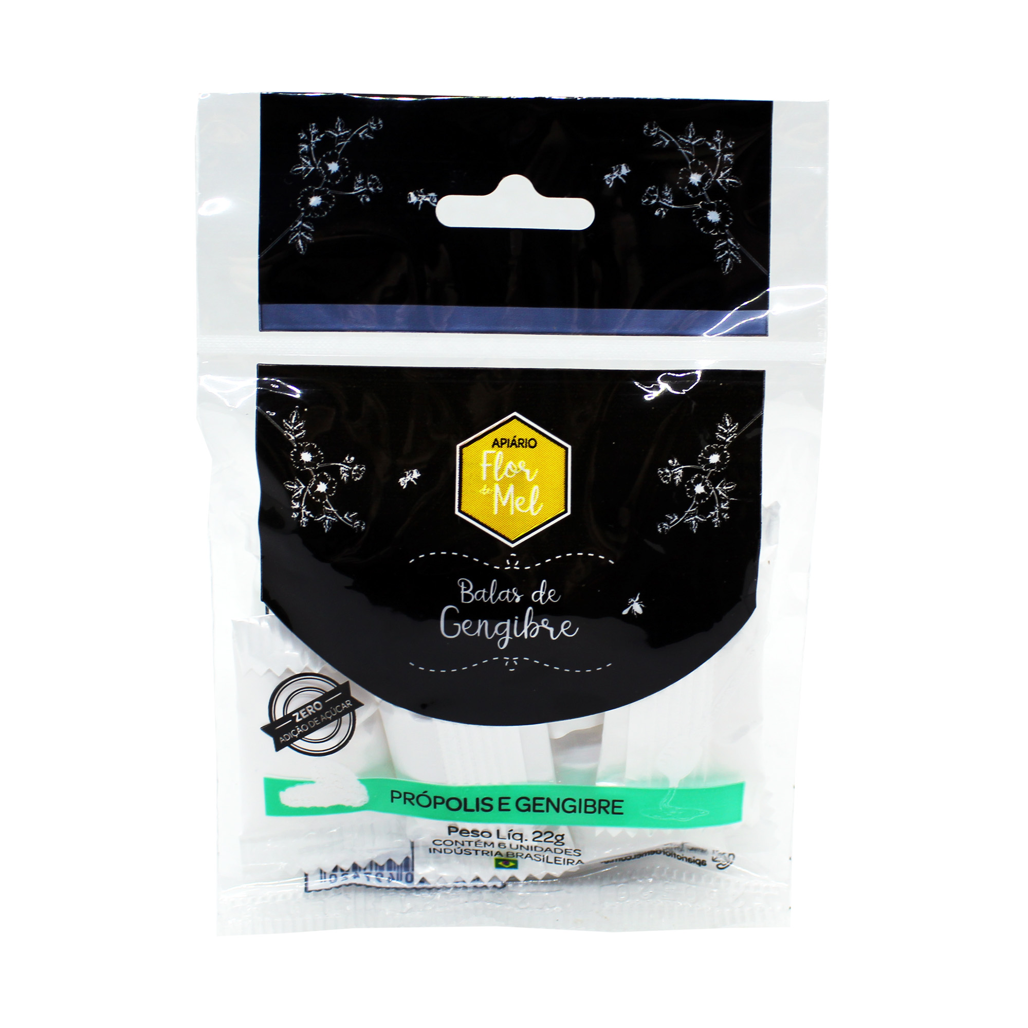 Balas de Gengibre e Própolis 22g Zero Adição de Açúcares Apiário Flor de Mel