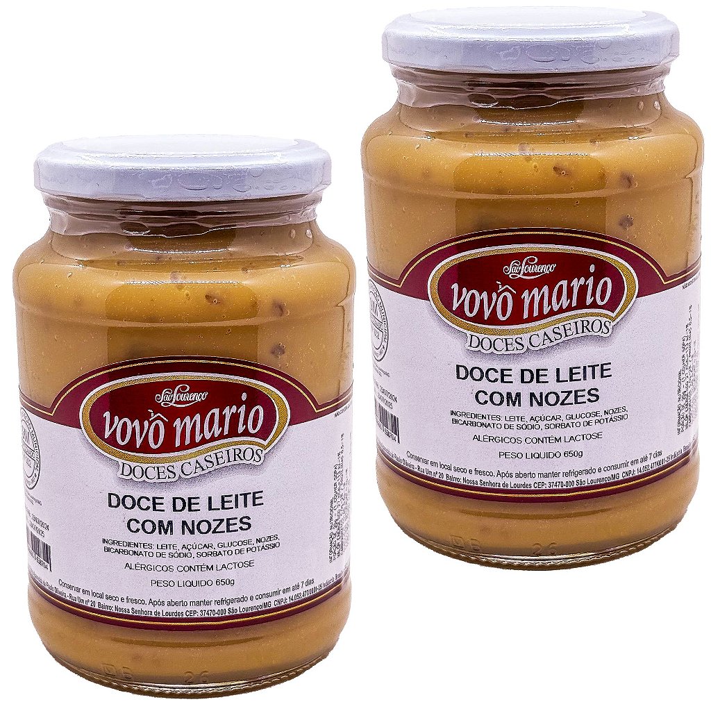 Doce de Leite com Nozes com Açúcar Sem Glúten Pote 650g Doce Vovô Mário