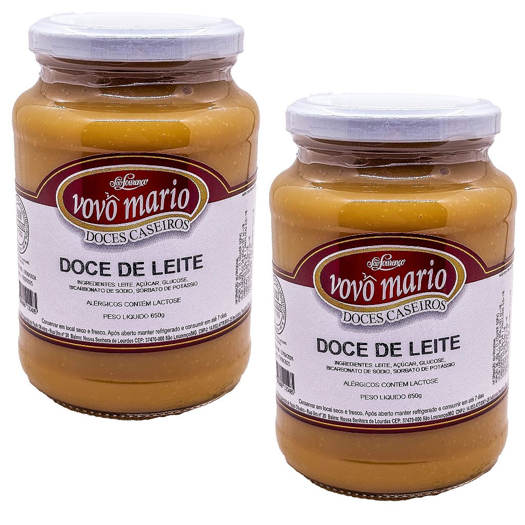 Doce de Leite Puro Tradicional com Açúcar Sem Glúten Pote 650g Doce Vovô Mário em pote