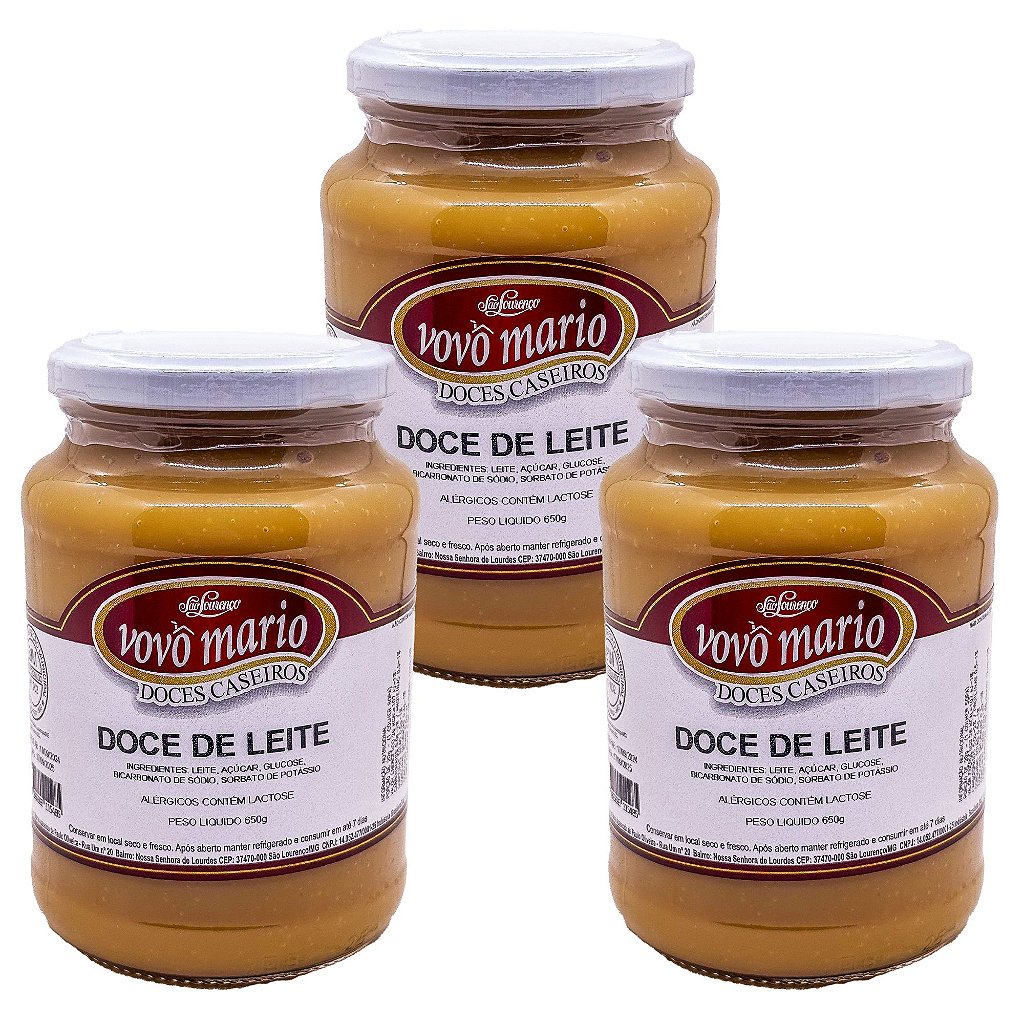 Doce de Leite Puro Tradicional com Açúcar Sem Glúten Pote 650g Doce Vovô Mário em pote