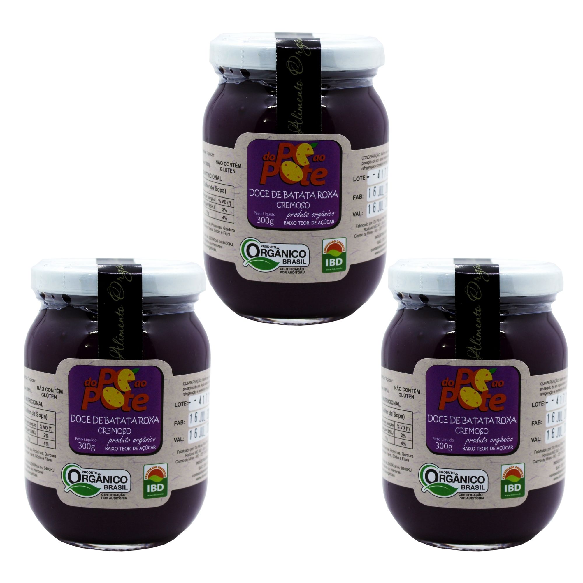 Doce de Batata Doce Orgânico 300g com Açúcar Sem Glúten Sem Lactose Do Pé ao Pote