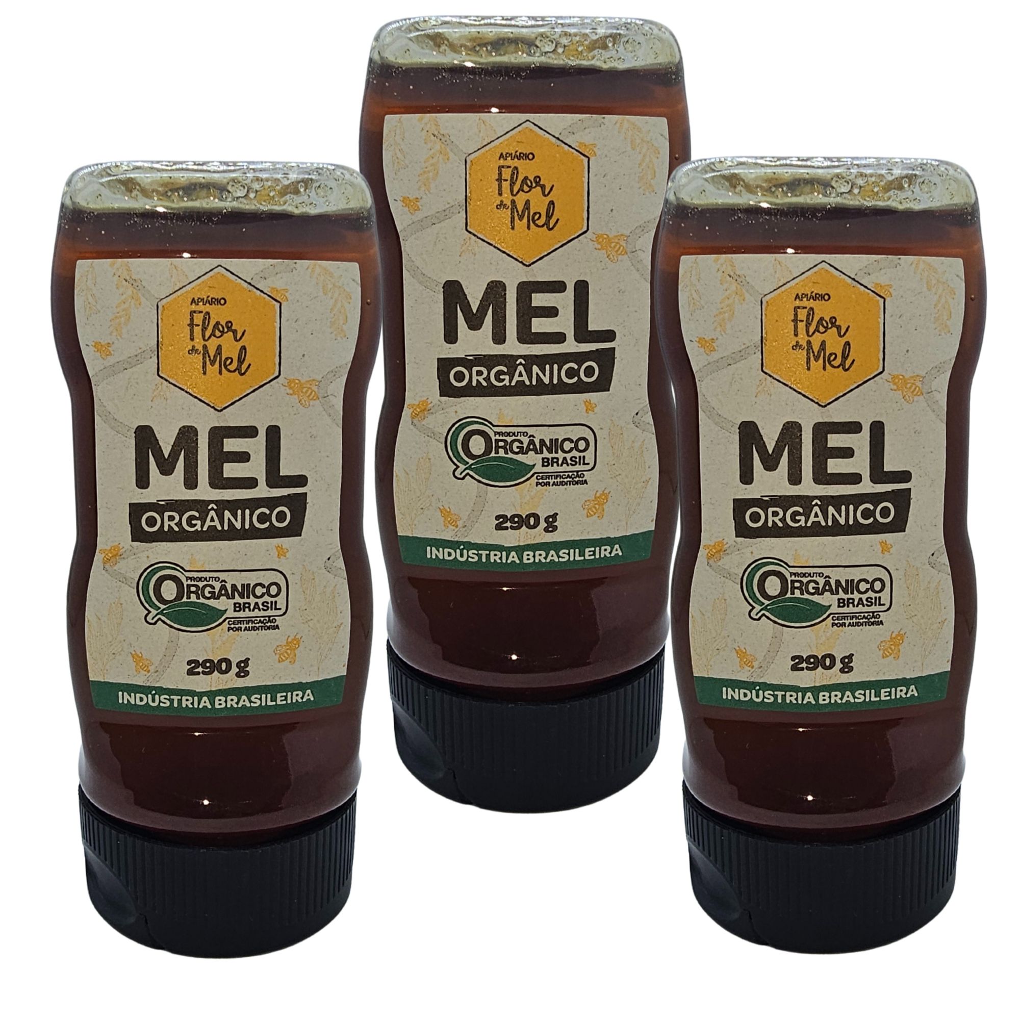 Mel Orgânico 290g (Puro) Sem Glúten Premium Apiário Flor de Mel - Kit 3 unidades