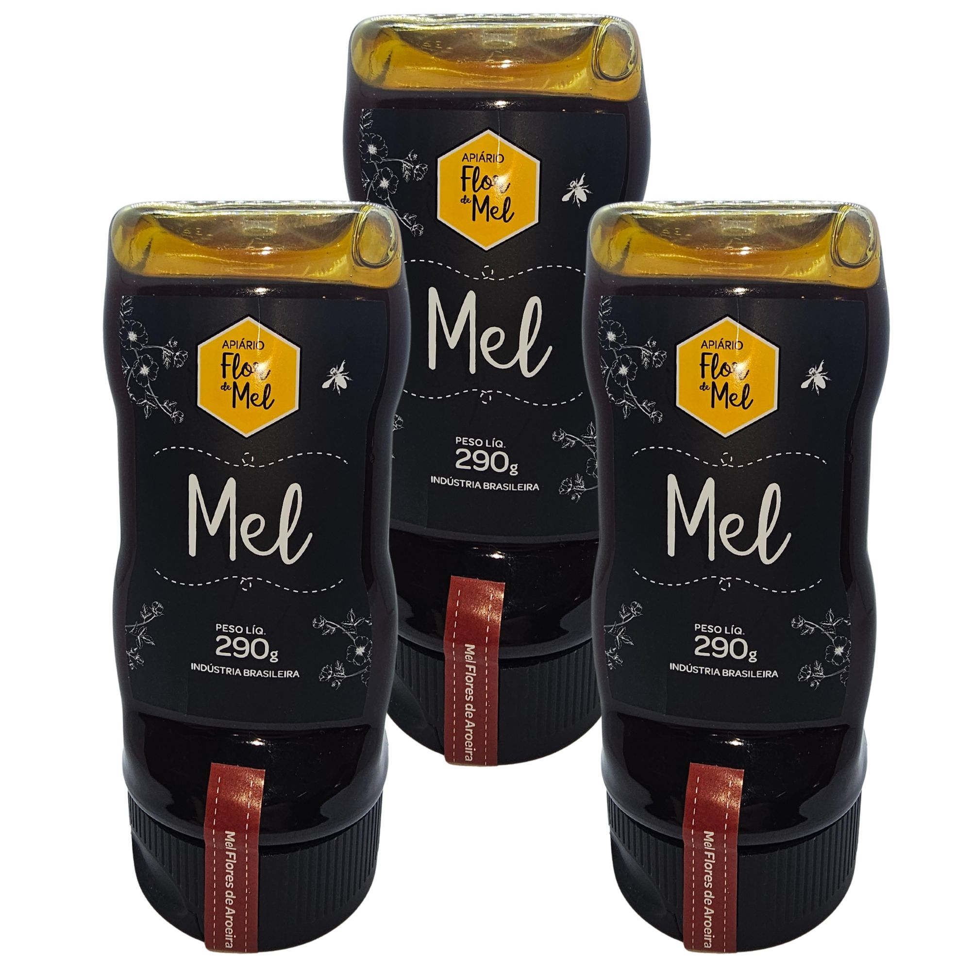 Mel Flores de Aroeira 290g 100% Puro Sem Glúten Premium Apiário Flor de Mel - Kit 3 unidades