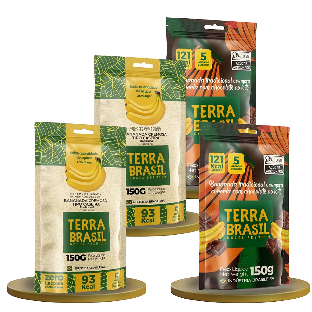Kit Terra Brasil 150g Bananinha Cremosa e Bananinha Cremosa Coberta com Chocolate ao Leite (2 pouch 5 Unidades de 30g)