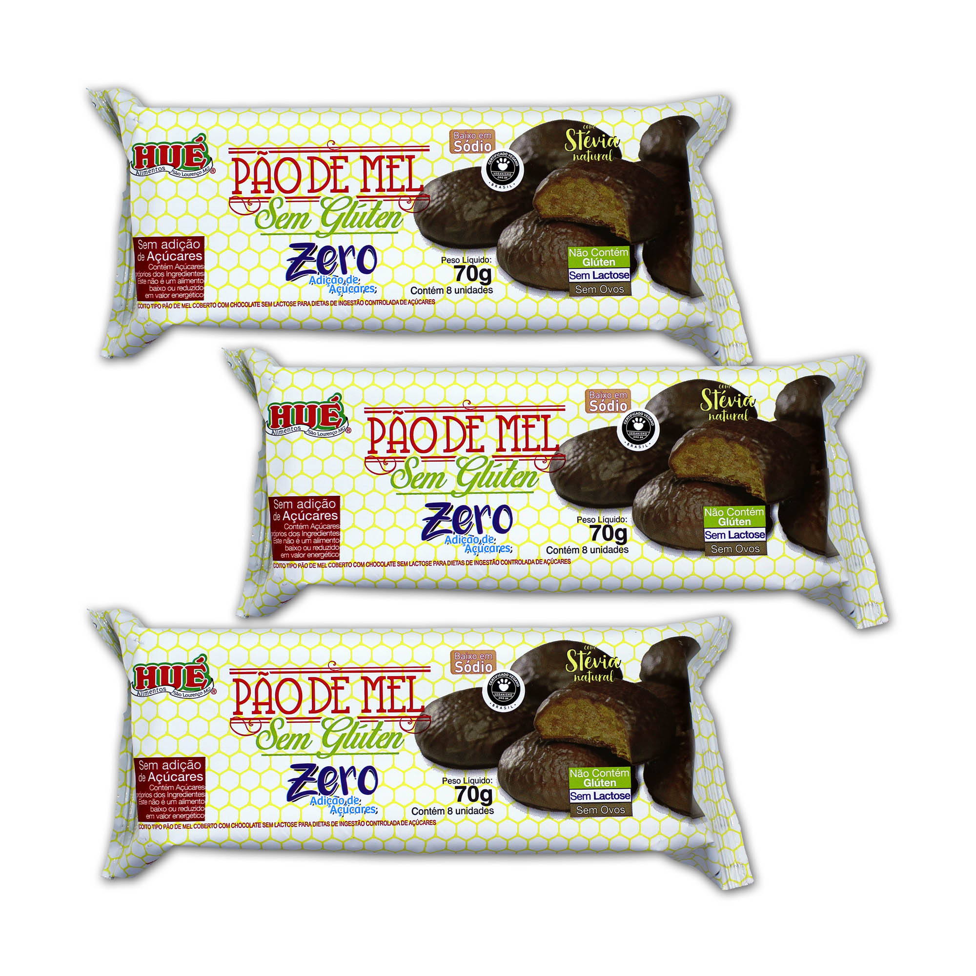 Pão de Mel ZERO Açúcar coberto com Chocolate 70g - Vegano - Sem Glúten, Sem Lactose e Sem Adição de Açúcares