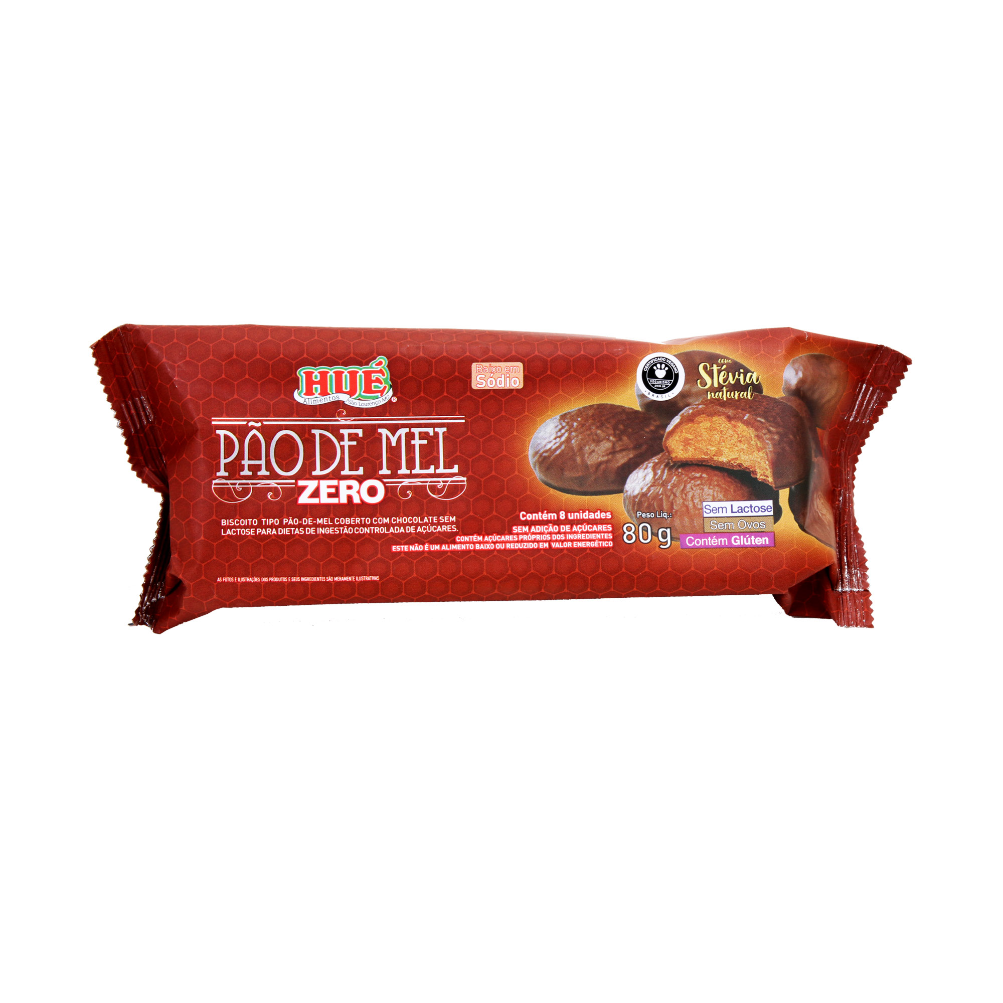 Pão de Mel ZERO Açúcar coberto com Chocolate 80g - Vegano - Sem Lactose e Sem Adição de Açúcares