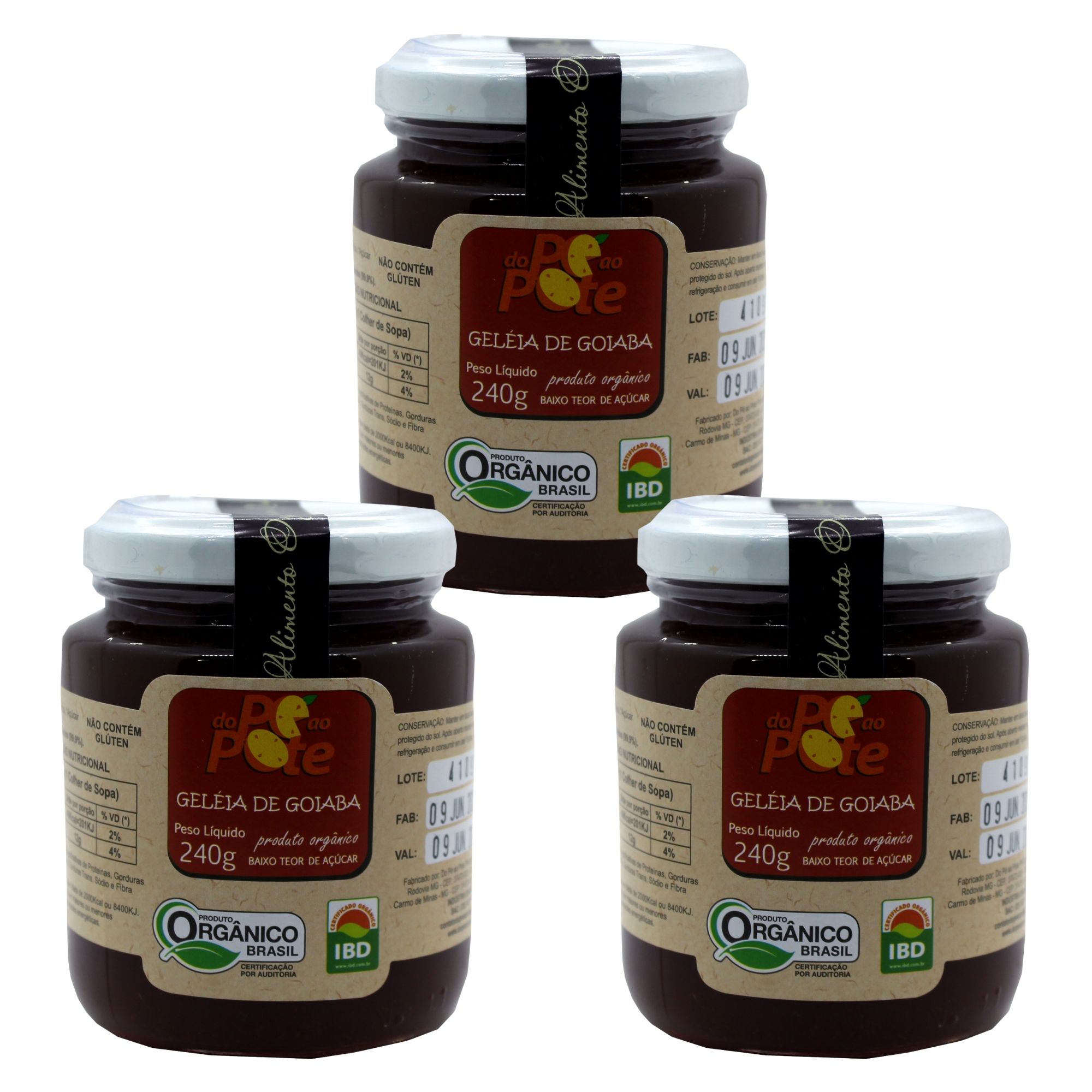 Geleia de Goiaba Orgânica 240g com Açúcar Sem Glúten Sem Lactose Do Pé ao Pote